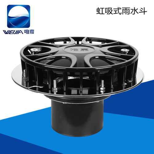 唯嘉虹吸式PE排水系统 是利用能够隔绝空气的虹吸式雨水斗和高精度PE管材、管件,通过建筑物的势能,使雨水通过密封的管道系统时形成满管流,在立管外跌落,产生虹吸作用,将层面雨水迅速排放的新型排放系统。虹吸式PE排水被广泛应用于大型厂房、展览馆、机场、运动场等跨度大、结构复杂的屋面雨水快速排放系统中。